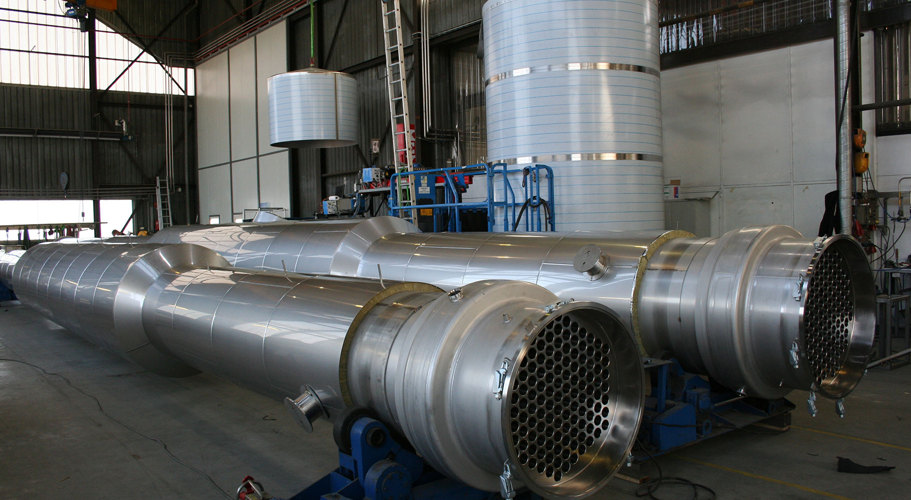 We have a hoisting capacity of 90 tonnes at our production facility. Heavier objects can be moved using a mobile hydraulic hoisting system.